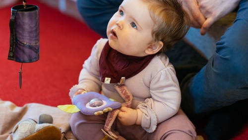 Timen er tilrettelagt, så den stimulerer babyens sanser og styrker kropsbevidstheden og fornemmelsen for rytme og nuancer i lyden.