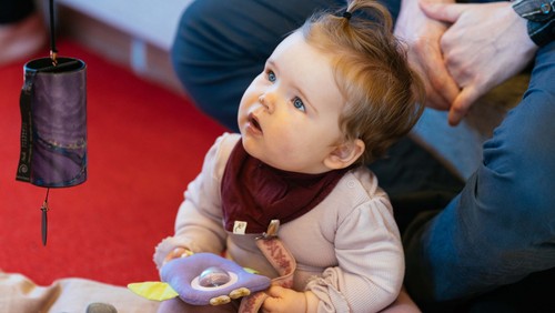 Timen er tilrettelagt, så den stimulerer babyens sanser og styrker kropsbevidstheden og fornemmelsen for rytme og nuancer i lyden.