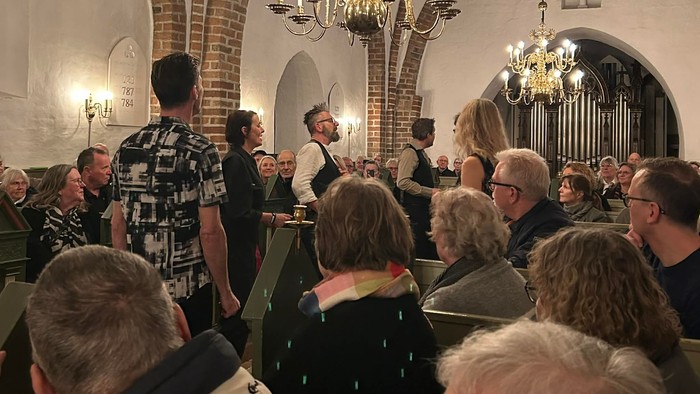 Det var et veloplagt hold, der mødte en fyldt Herfølge Kirke torsdag aften – hvor både sangglæde og kemi mellem gruppen og publikum var i top.