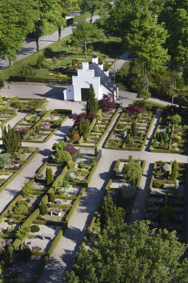 Den gamle del af Herfølge kirkegård set fra kirke tårnet